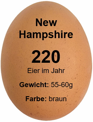 Das New Hampshire Huhn wurde Anfang des 20. Jahrhunderts im US-Bundesstaat New Hampshire aus dem Rhodeländer Huhn weitergezüchtet.