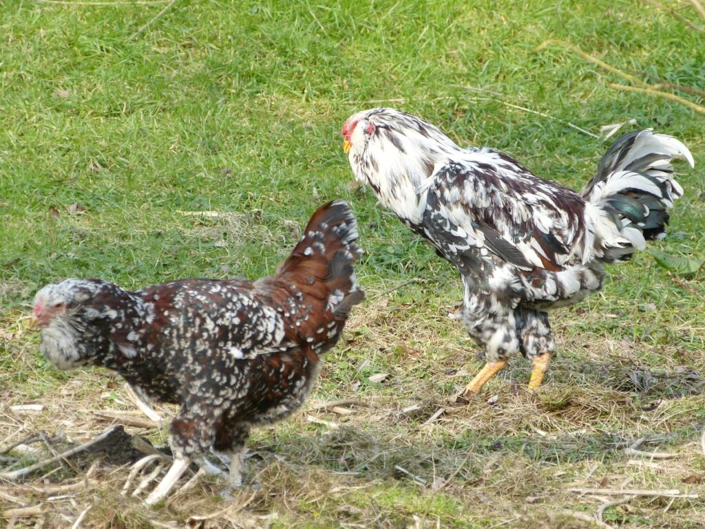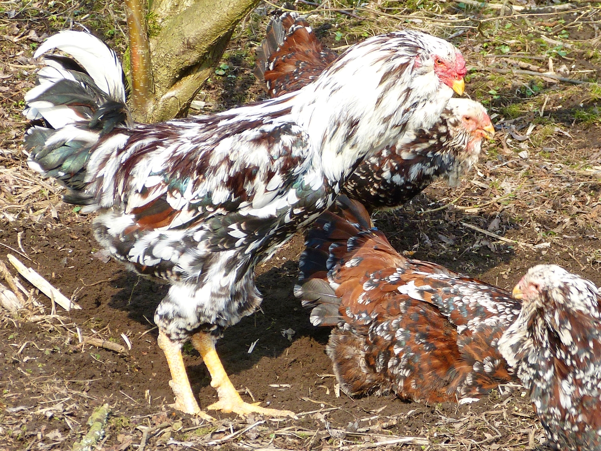 | Orloff Hühner sind robuste, friedliche und ruhige Winterleger mit großem Vollbart und Wulstkamm. |